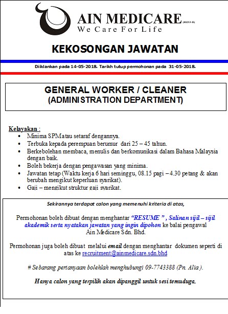Jawatan Kosong Di Ain Medicare Job Jawatan Kosong