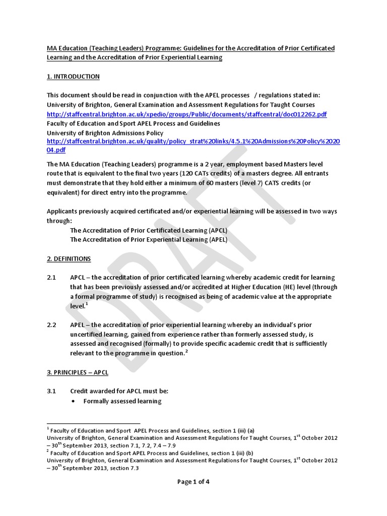 Apel Approval Of Prior Experiential Learning By Acronymsandslang Com