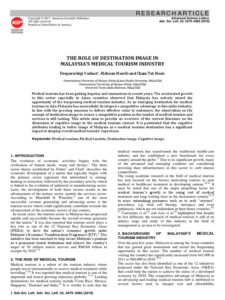 Pdf The Role Of Destination Image In Malaysia S Medical Tourism Industry