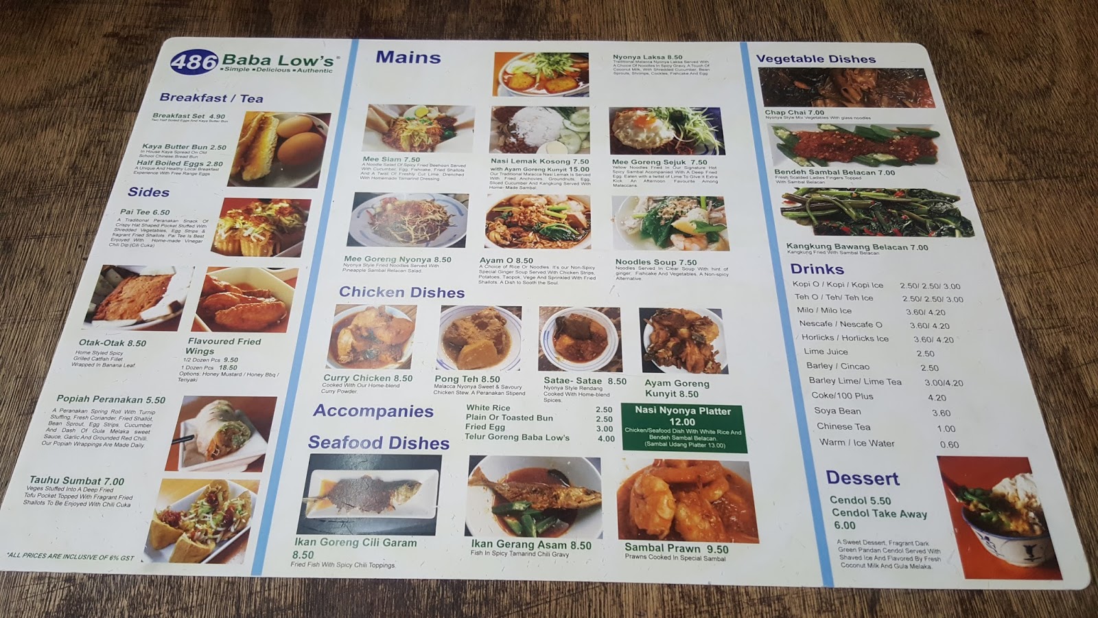 The Menu Picture Of 486 Baba Low S Bangsar Kuala Lumpur Tripadvisor