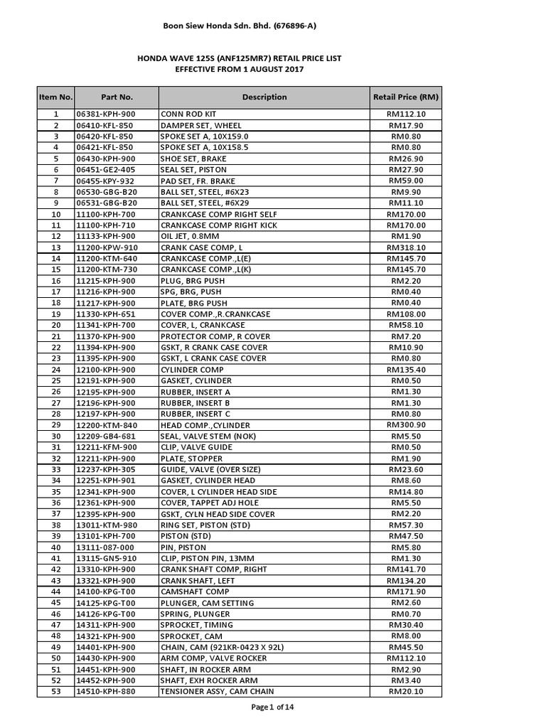 Wave125s Anf125mr7 Suggestionretailpricelist Aug2017 Carburetor Screw