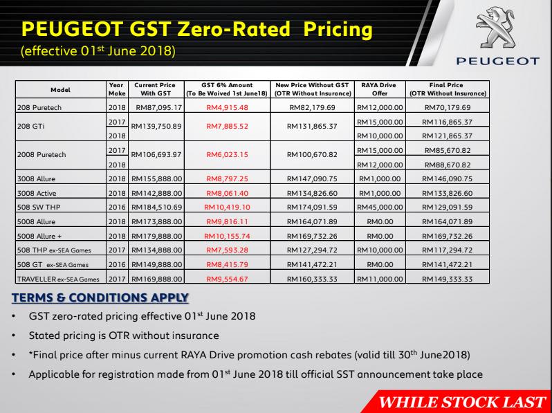 Motoring Malaysia Zero Gst New Prices For Citroen Ds Peugeot From 1st June 2018