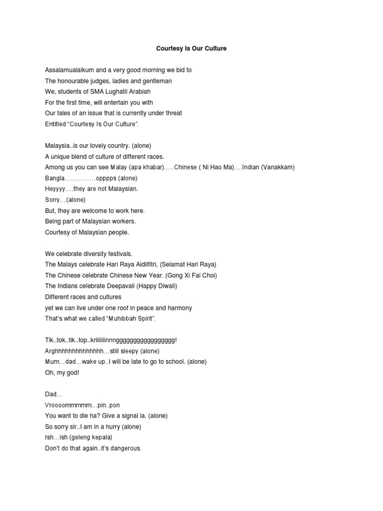 Courtesy Is Our Culture Choral Speaking Text