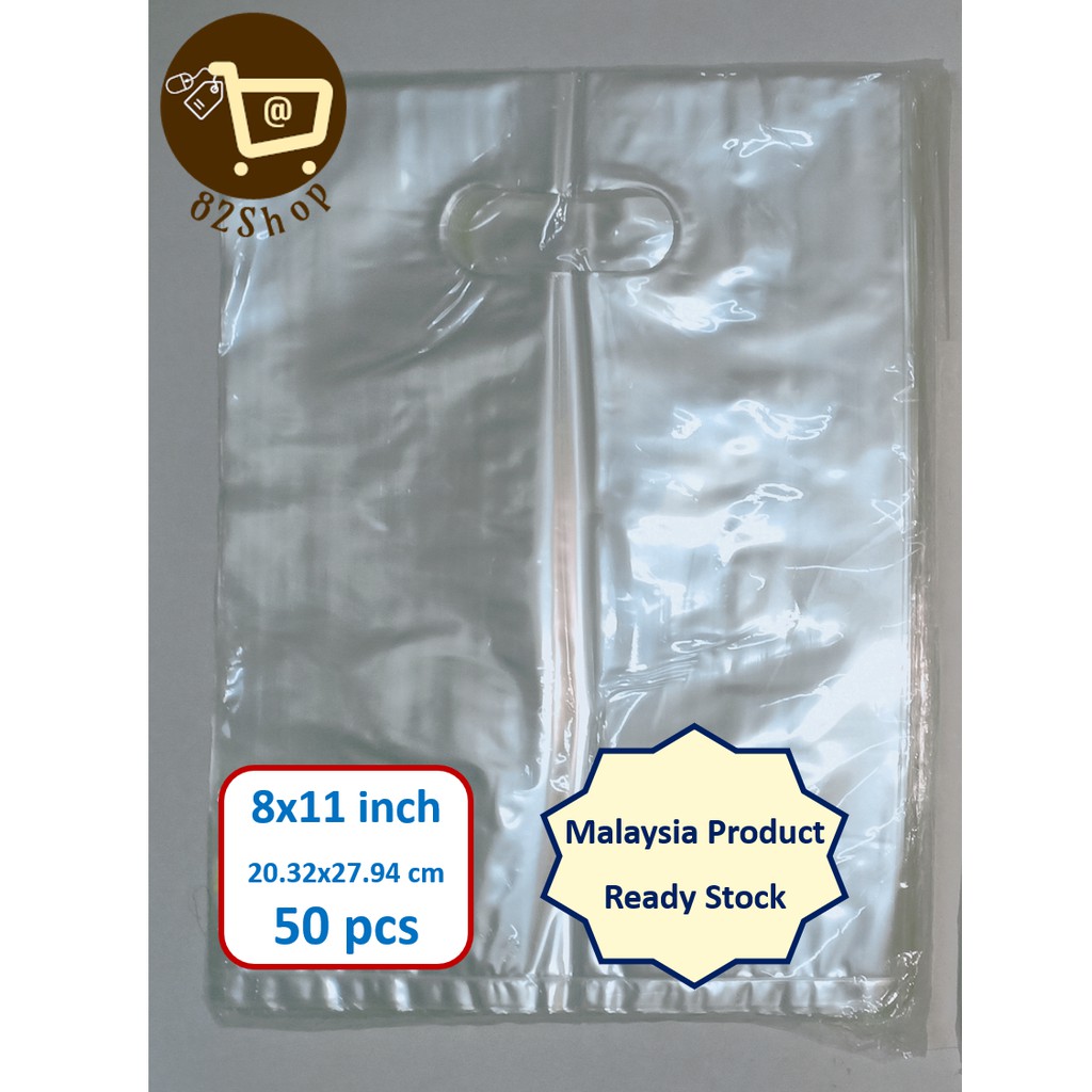 Transparent Plastic Bag 8x11 Inch 50pcs Clear Pp Shopping Gift Packaging Handle With Hole Plastic Bags Shopee Malaysia