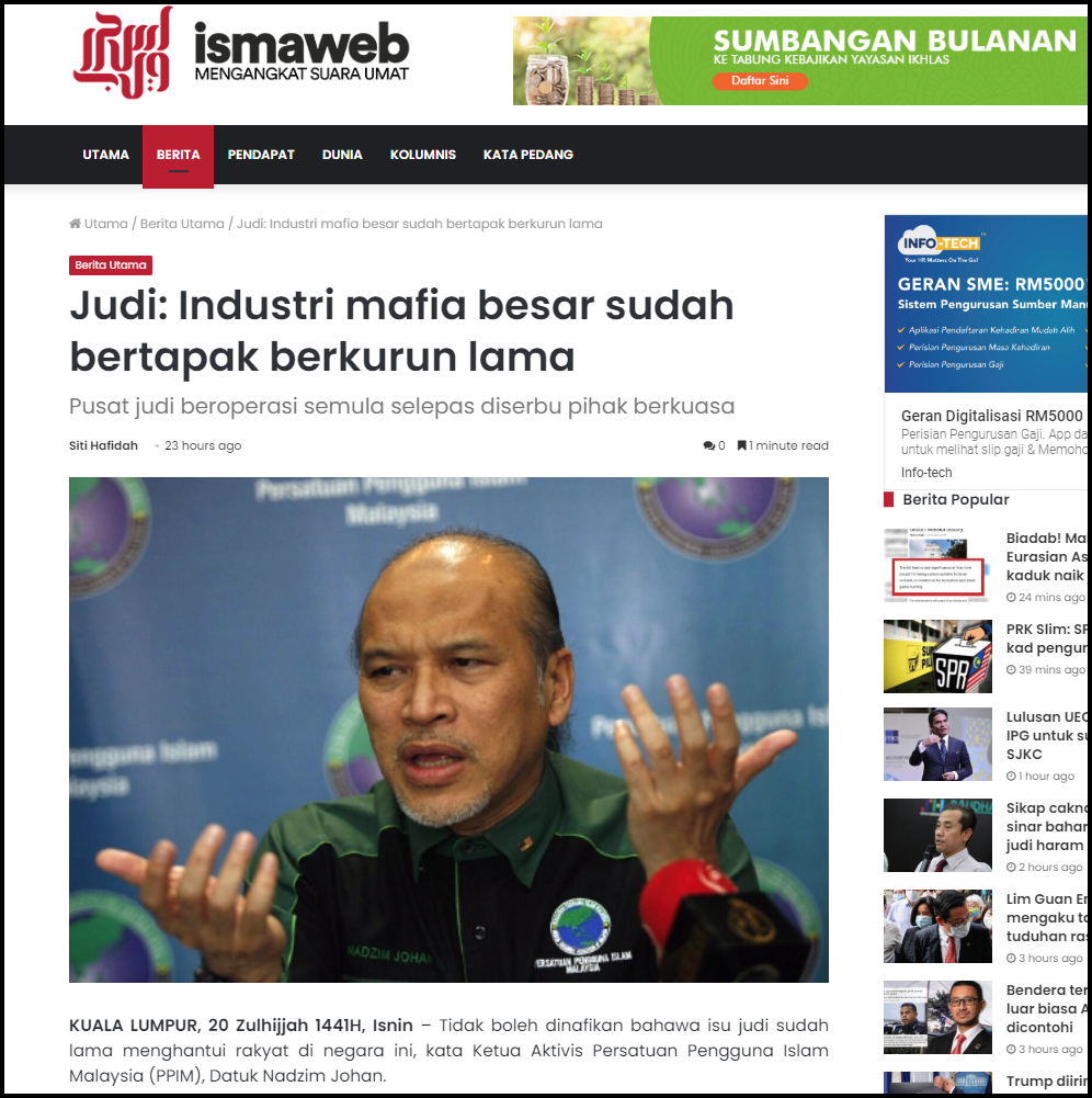 Blog Rasmi Ppim 5798 Judi Industri Mafia Besar Sudah Bertapak Berkurun Lama Ismaweb 11 08 2020