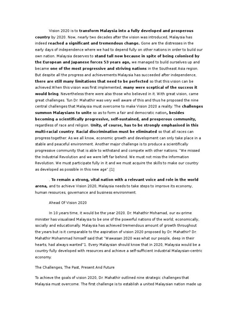 Solved Question 5 Malaysia S Vision 2020 With Nine Chall Chegg Com