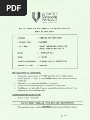 Baa 2113 Theory Of Structure Final Exam Paper Beam Structure Bending