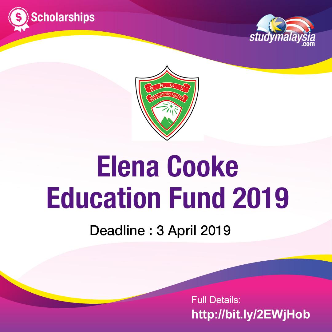 Elena cooke education fund. The elena cooke education fund typically works closely with local higher educational institutions like the sunway education group sunway university and sunway college kl and kbu international college so that successful candidates are financially covered throughout their diploma degree course. Now open applications for elena cooke education fund scholarship 2014 bbgs alumni berhad invites applicants for the elena cooke education fund scholarships 2014. The fund launched in 2009 in honour of elena cooke a student teacher and the 10th principal of the school and to continue her legacy of giving every opportunity to deserving young malaysians to. Syarat kelayakan biasiswa pendidikan elena cooke 2020 antara syarat kelayakan permohonan biasiswa pendidikan elena cooke adalah seperti berikut.