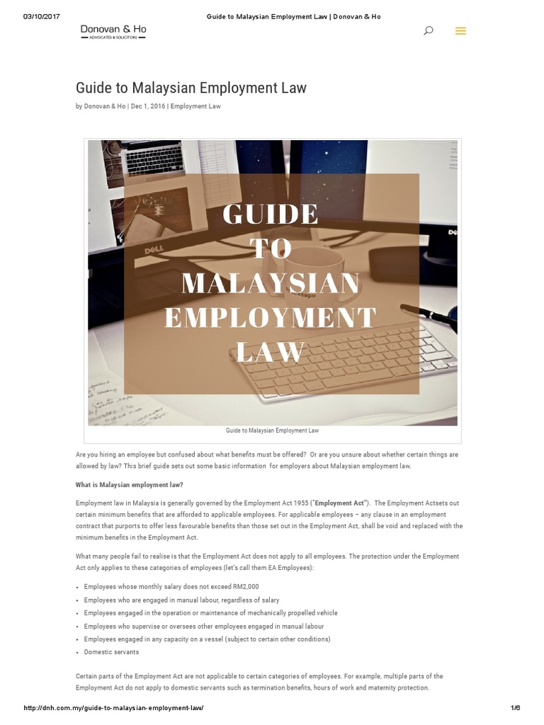 Guide To Malaysian Employment Law Donovan Ho