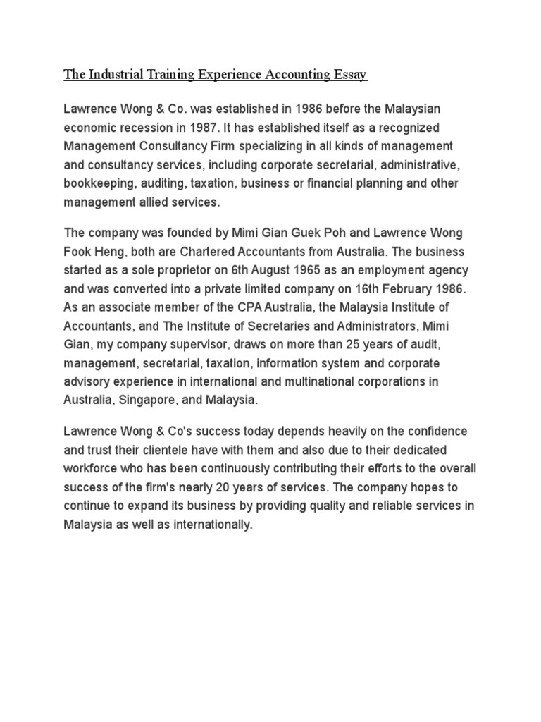 The Industrial Training Experience Accounting Essay Cheque Accounting