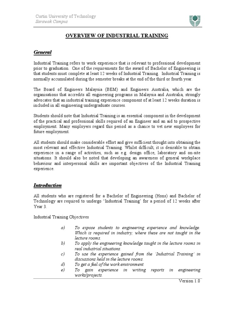 Pdf Overview Of Industrial Training Nurul Izzati Academia Edu