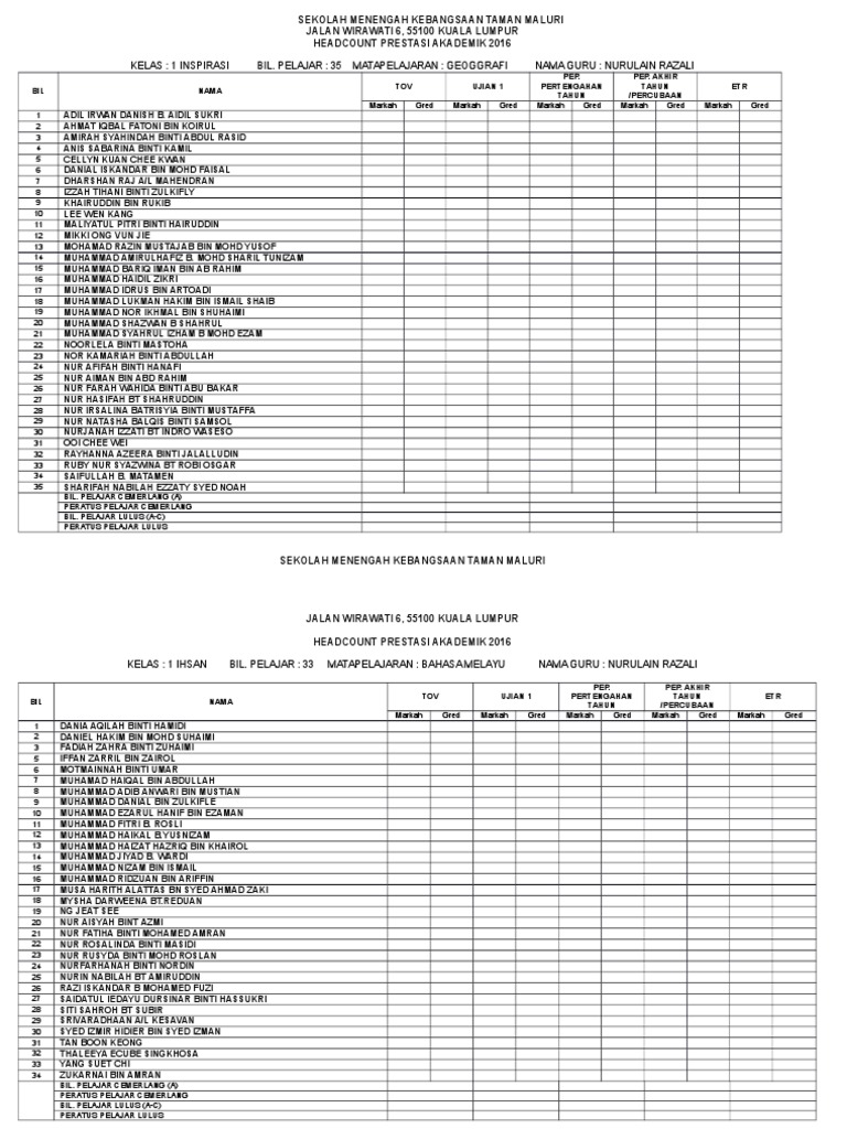 Template Headcount Sekolah Menengah Raihan Jalaludin S Blog