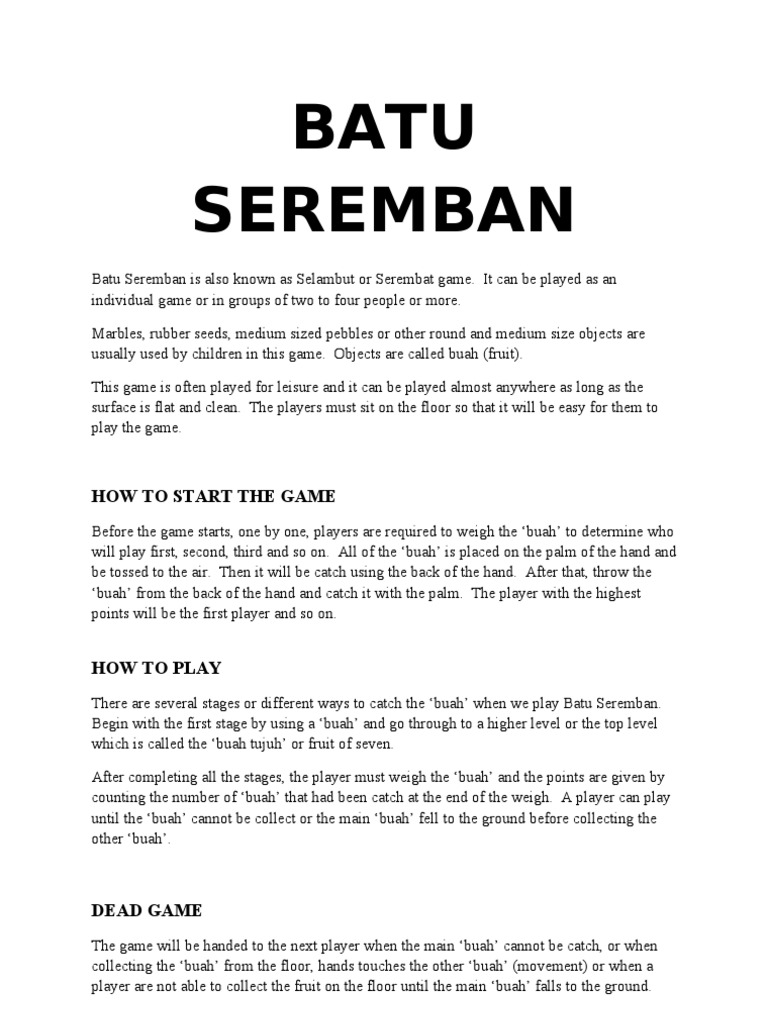 Games We Used To Make And Play Doris On Playing Batu Seremban