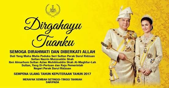 Keputeraan sultan perak 2017. Hari keputeraan dymm paduka seri sultan perak 2015 by ana jingga november 27 2015 20 comments. Tarikh cuti umum negeri perak tahun 2017. Duli yang maha mulia paduka seri sultan perak darul ridzuan sultan nazrin muizzuddin shah ibni almarhum sultan azlan muhibbuddin shah al maghfur lah sultan yang di pertuan dan raja pemerintah negeri perak darul ridzuan sempena ulang tahun keputeraan 2017 pada jumaat 3 november 2017 merafak sembah setinggi tinggi tahniah daripada seluruh warga. Koleksi titah dymm paduka seri sultan perak.