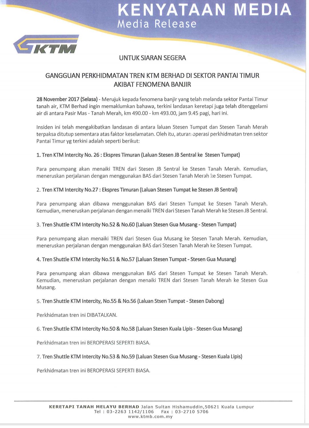 Ktmb 03 2267 1200 On Twitter Kenyataan Media Gangguan Perkhidmatan Tren Ktm Berhad Di Sektor Pantai Timur Akibat Fenomena Banjir