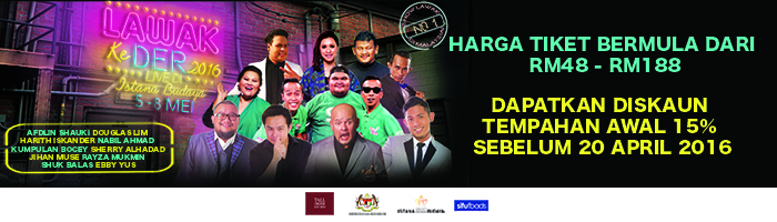1 malaysia ini akan menampilkan ramai pelawak pelawak terbaik. Lawak ke der 2016 5 8 may 2016 di istana budaya pestaim jejakan kaki kat istana budaya. Masa 5 7 may mula 8 30 mlm. Justeru penerbit lawak ke der 2016 datuk hans isaac mengakui dia perlu menjadi seorang yang cerewet untuk menilai penghibur yang akan dipersembahkan di di istana budaya pada 5 hingga 8 mei ini.