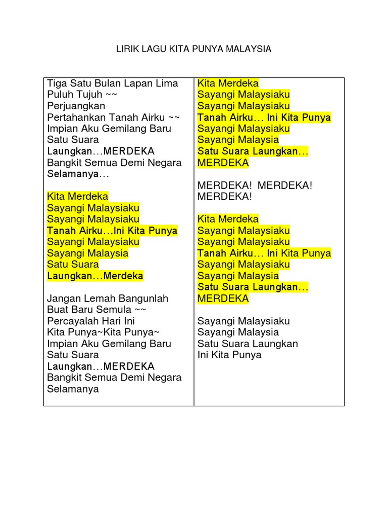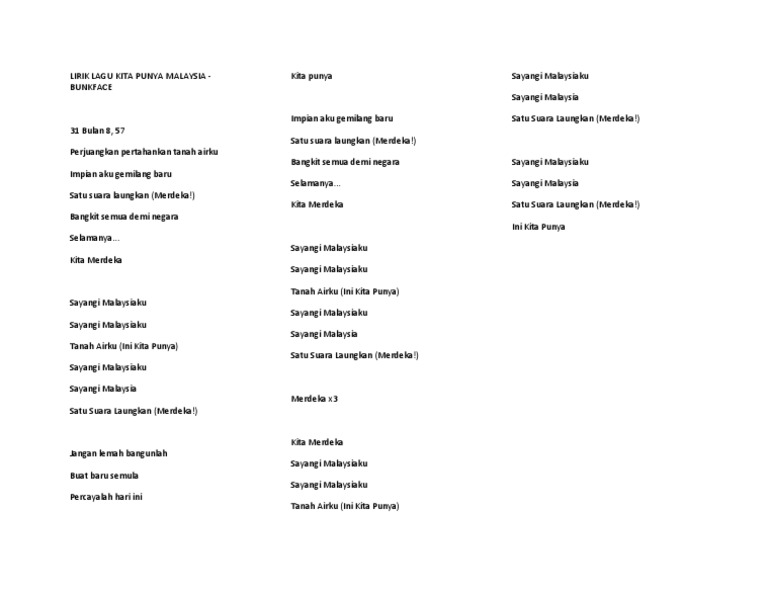 Lirik Lagu Kita Punya Malaysia Docx