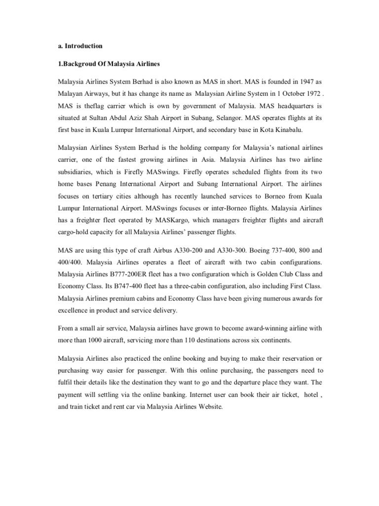 Doc Background Of Malaysia Airlines Ess Ess Academia Edu