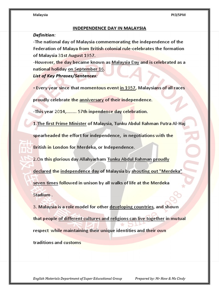 Independence Day Essay Malaysia Essay Example