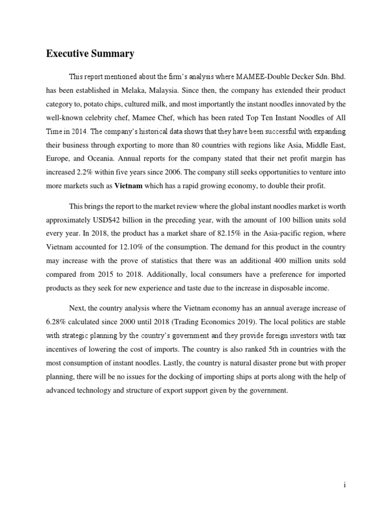 Strategic Plan Of Mamee Double Decker Sdn Bhd Exporting Instant Noodles Vietnam Economics