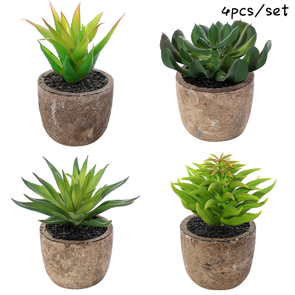 Artificial Fake Succulent Landscape With Basin 4pcs Plant In Pot Mini Potted Plants Decor Foliage High Quality Shopee Malaysia