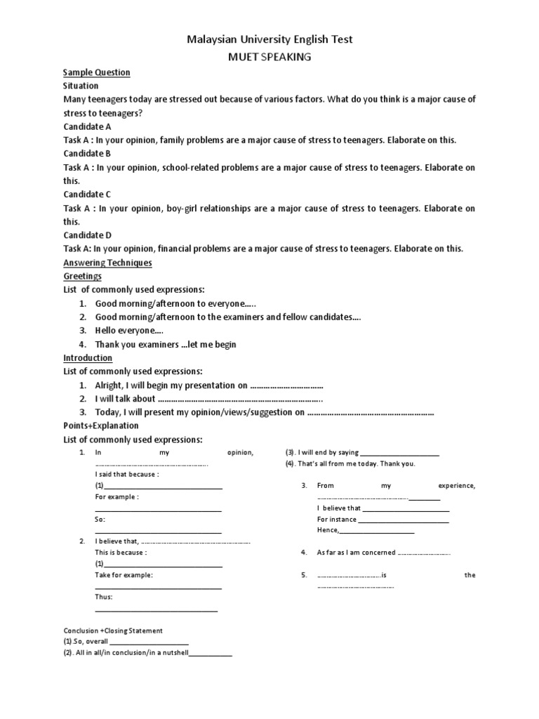 Muet Sample Question Speaking