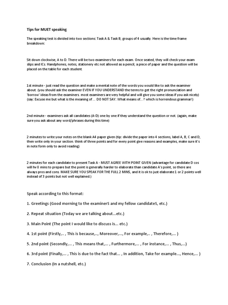 Muet Speaking Tips Free Essay Example