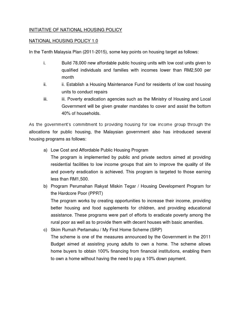 After working for four months the housing and local government ministry kpkt has finally unveiled the national housing policy dasar perumahan negara drn 2018 2025 today with the objective of gathering public and private sector resources to solve the demand and supply mismatch problem. B40 remains key thrust of malaysia s national housing policy nhp ensuring affordability level of local community is taken into consideration by developers. We prefer matrix concepts. National housing policy unveiled.