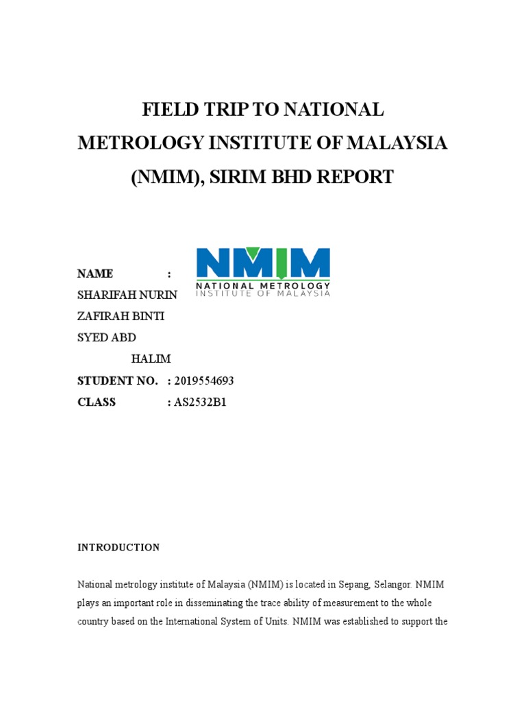 Industrial Training At National Metrology Institute Of Malaysia Nmim Youtube