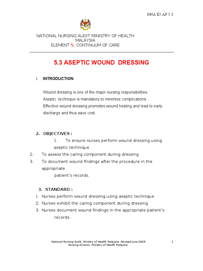 3 Aseptic Wound Dressing Revise 1 April 2011 Health Care Medicine