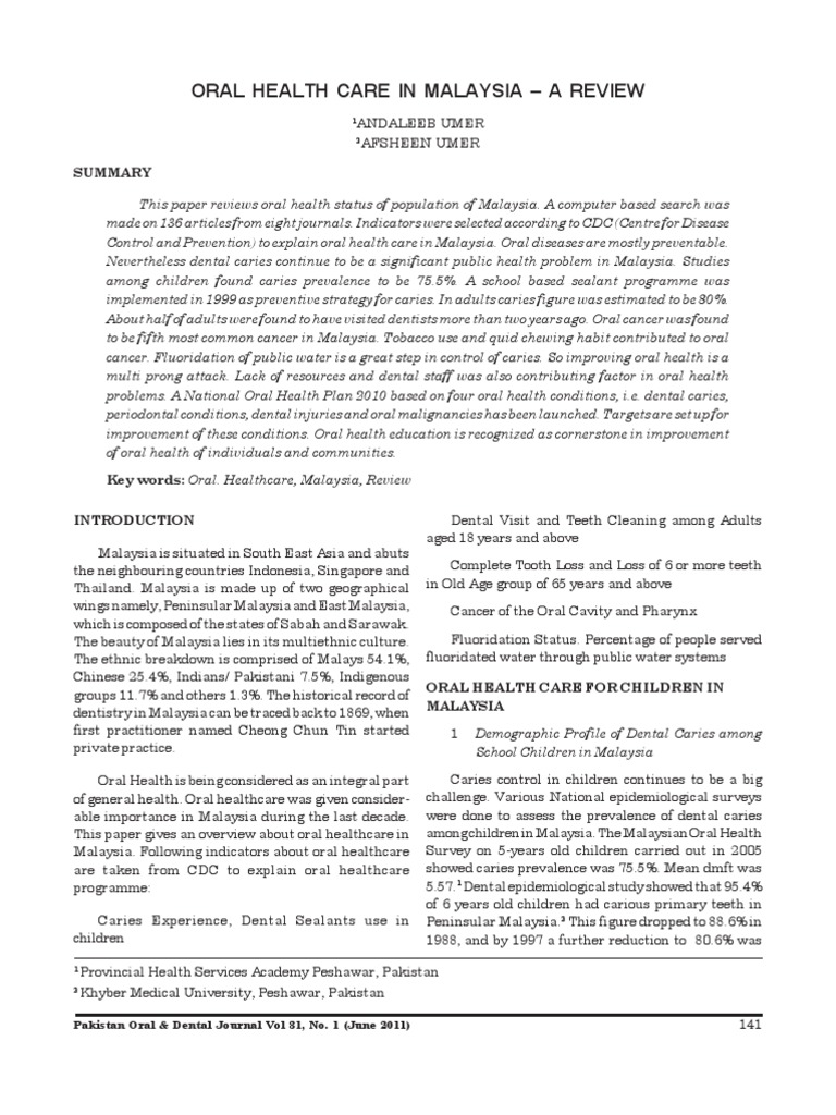 Pdf Malaysian Dental Journal Oral Health Awareness Behaviour And Status Among Malaysian 16 Year Old School Students In Penang