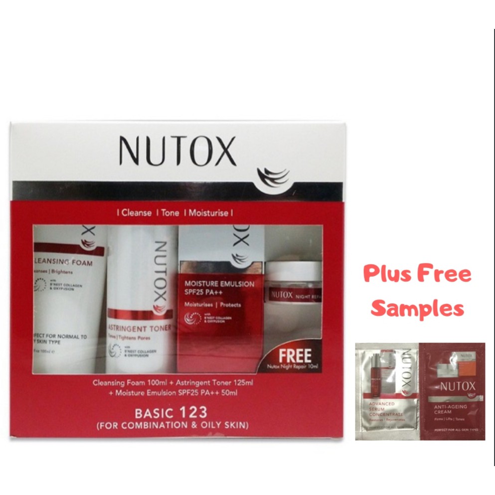 Stay young with nutox. Infused with sweet almond and grapefruit oils it cleanses and refreshes skin while its bird s nest s extract protects skin from visible signs of aging. I bought most of the products in a span of one month starting with the cleanser and the moisturizer for oily skin. Best price and free shipping above s 50 00 products.