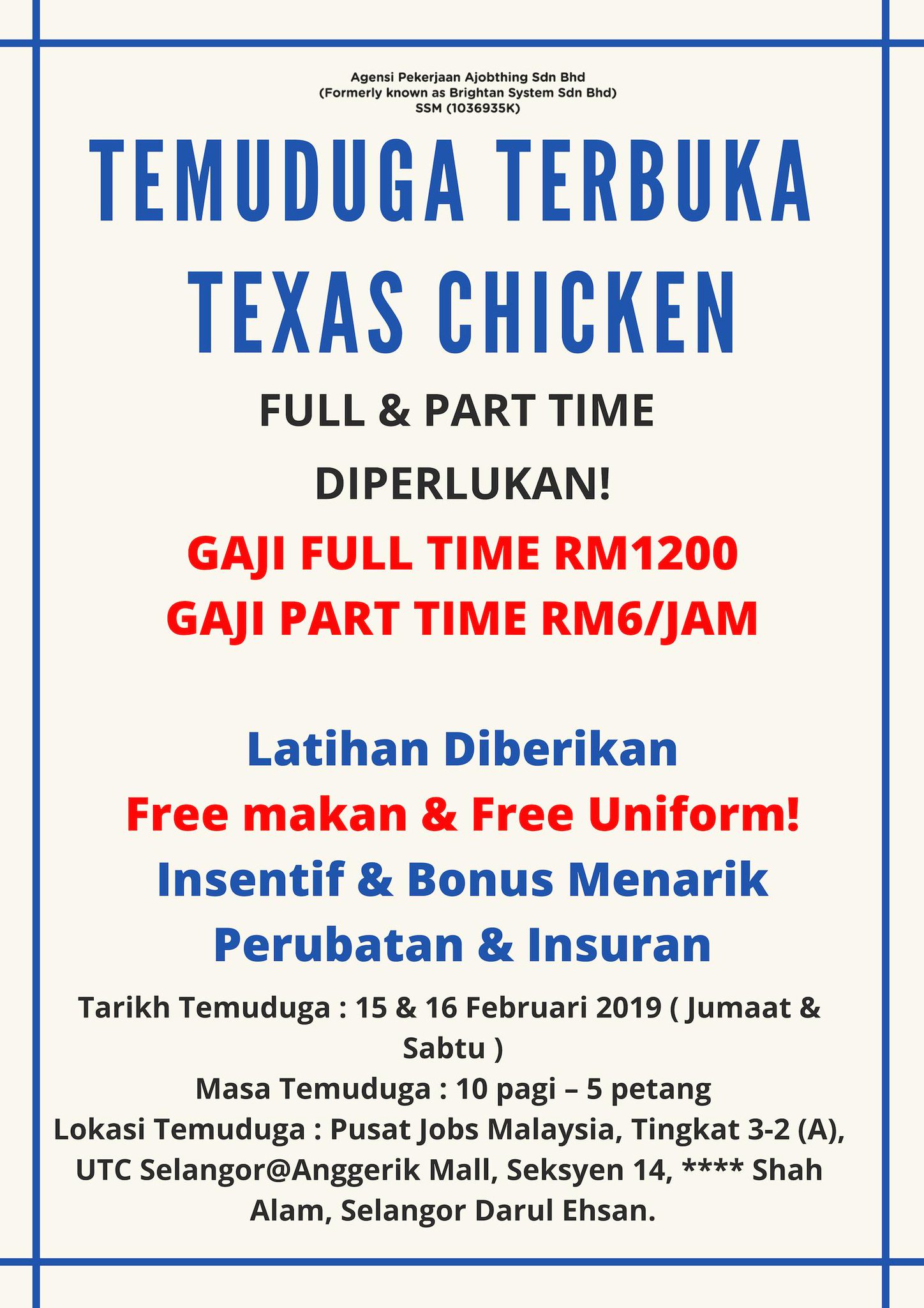 Maukerja On Twitter Open Interview Texas Chicken 15 16 Feb 2019 Student Di Area Shah Alam Yang Mencari Kerja Part Time Boleh Mohon Gaji Rm6 Jam Free Makan Pulak Tu Jawatan