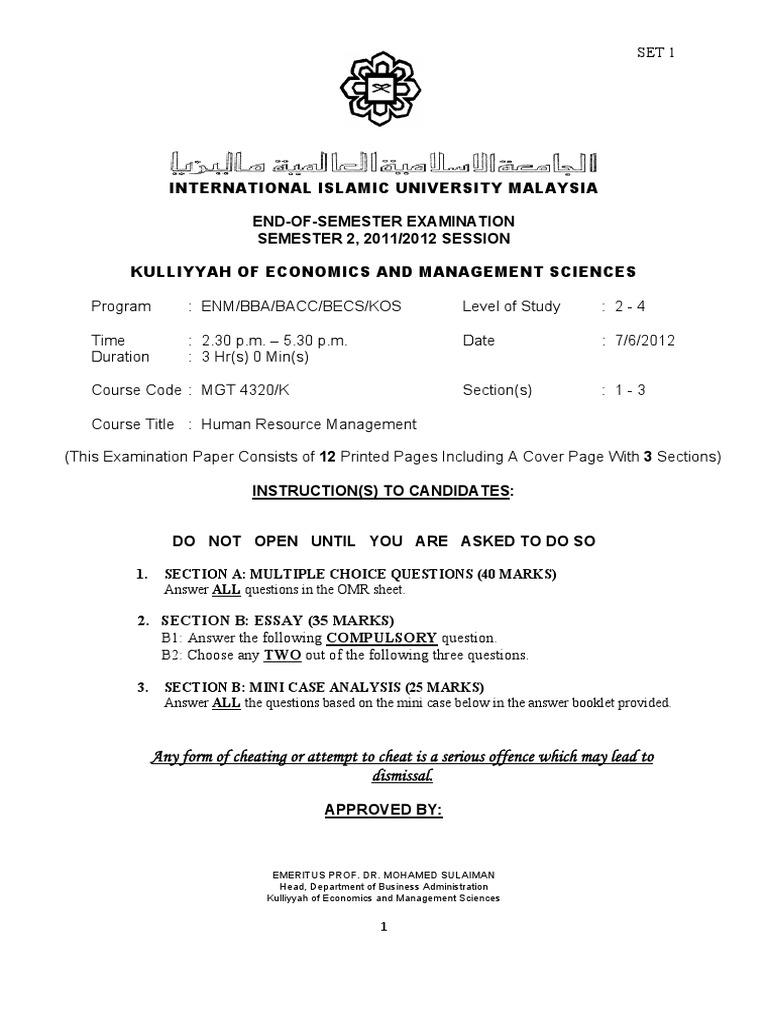 Final Exam Human Resources Management Iium Employment Test Assessment