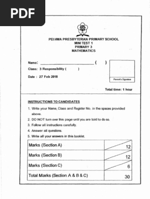 P3 Maths Ca1 2018 Pei Hwa Exam Papers