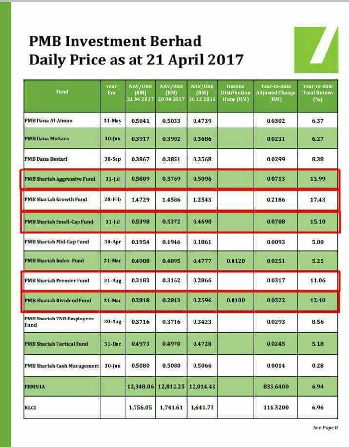 Islamic Investment Malaysia Pmb Investment Daily Fund Price Year To Date Return As At 25 April 2019