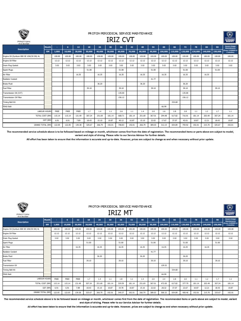 Proton periodical service maintenance. Looking at the table the cost of every service interval is equal between the saga at and saga cvt with the only difference being at the 60 000 km 36 month mark when the transmission needs to be. Immediately contact with an authorized service outlet for periodic inspection. All proton savvy service books are stamped on every proton savvy service we do also each proton savvy service carries a 12 month parts and labour guarantee. Part name price pm rm please refer to.