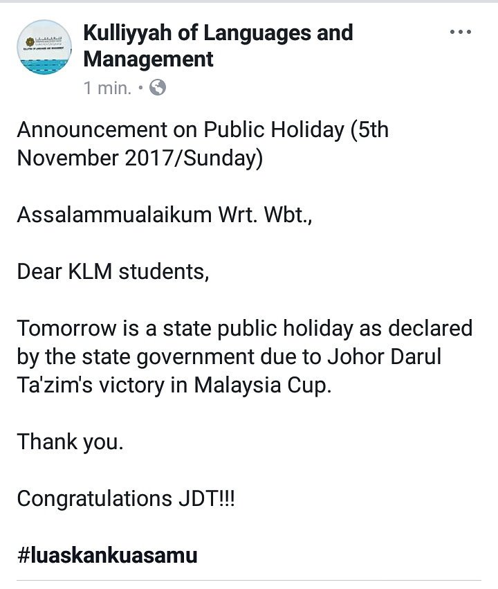 Klm Iiumpagoheduhub On Twitter Announcement On Public Holiday 5th November 2017 Sunday