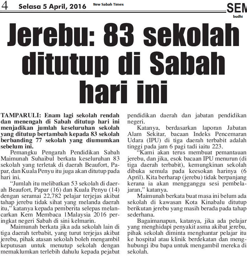 Blog Koleksi Akhbar Pendidikan New Sabah Times Jerebu 83 Sekolah Ditutup Di Sabah Hari Ini