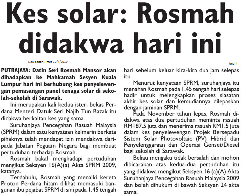 Blog Koleksi Akhbar Pendidikan New Sabah Times Kes Solar Rosmah Didakwa Hari Ini