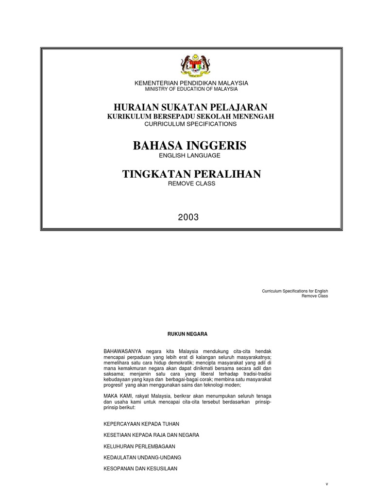 Huraian Sukatan Pelajaran Bahasa Inggeris Tingkatan 1 By Smk Lembah Bidong Issuu