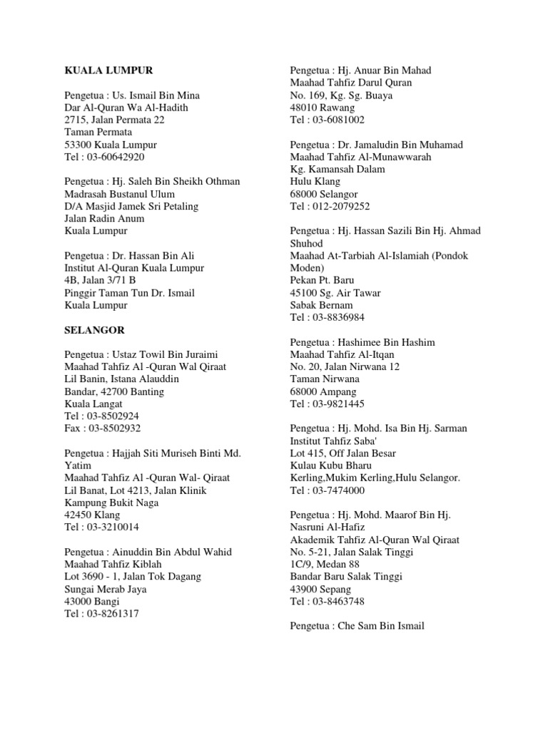 Sekolah Tahfiz Di Selangor Yang Berdaftar Senarai Lengkap