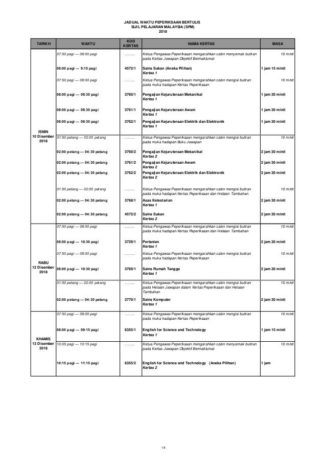 Spm 2018 time table. Public school spm college campus sadashiv peth pune mh 411030 tel. Ts tfe 1 figure 2. Sijil pelajaran malaysia tingkatan 5. Public school spm college campus sadashiv peth pune mh 411030 tel.