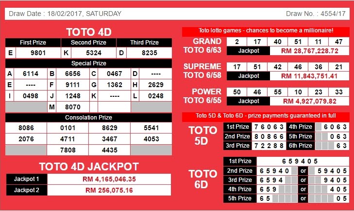 4d Result Malaysia February 2017