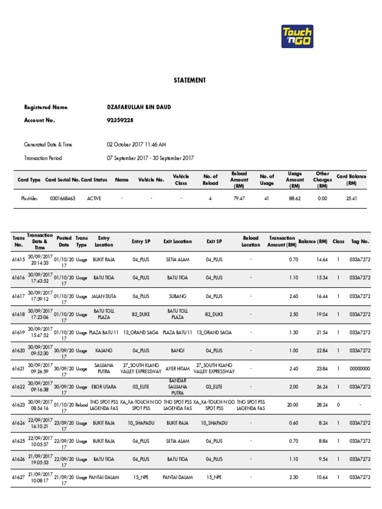 How To Edit Touch N Go Statement