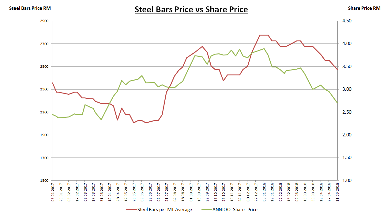 Annjoo Share Price Vs Malaysia Domestic Steel Bars Price 18th May 2018 Oldfriendsinvesting Good Articles To Share I3investor