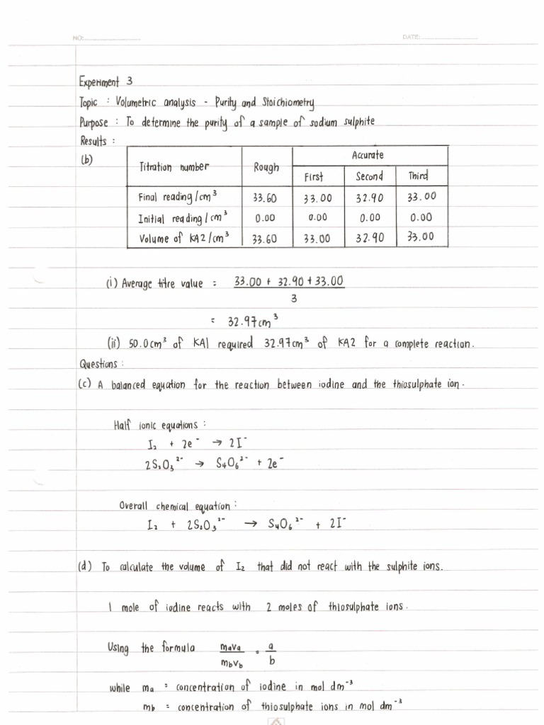 Stpm Chemistry Practical Experiment 3 2012 Semester 1