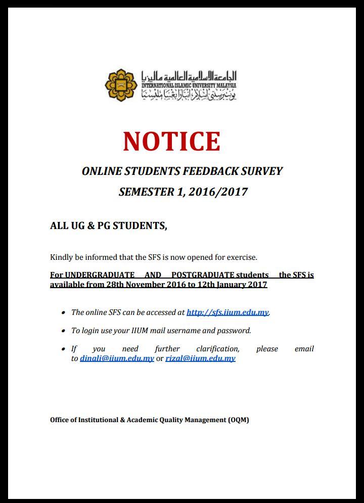 Src Iium Gombak On Twitter Notice On Online Student Feedback Survey For Semester 1 2018 2019 Assalamualaikum Wbt Dear Iium Students Please Be Informed That All Iium Students Are Required To Complete The
