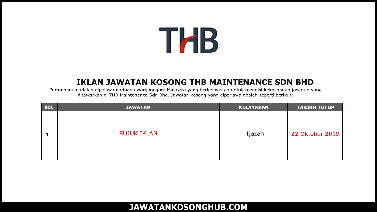 Jawatan Kosong Terkini Thb Maintenance Sdn Bhd