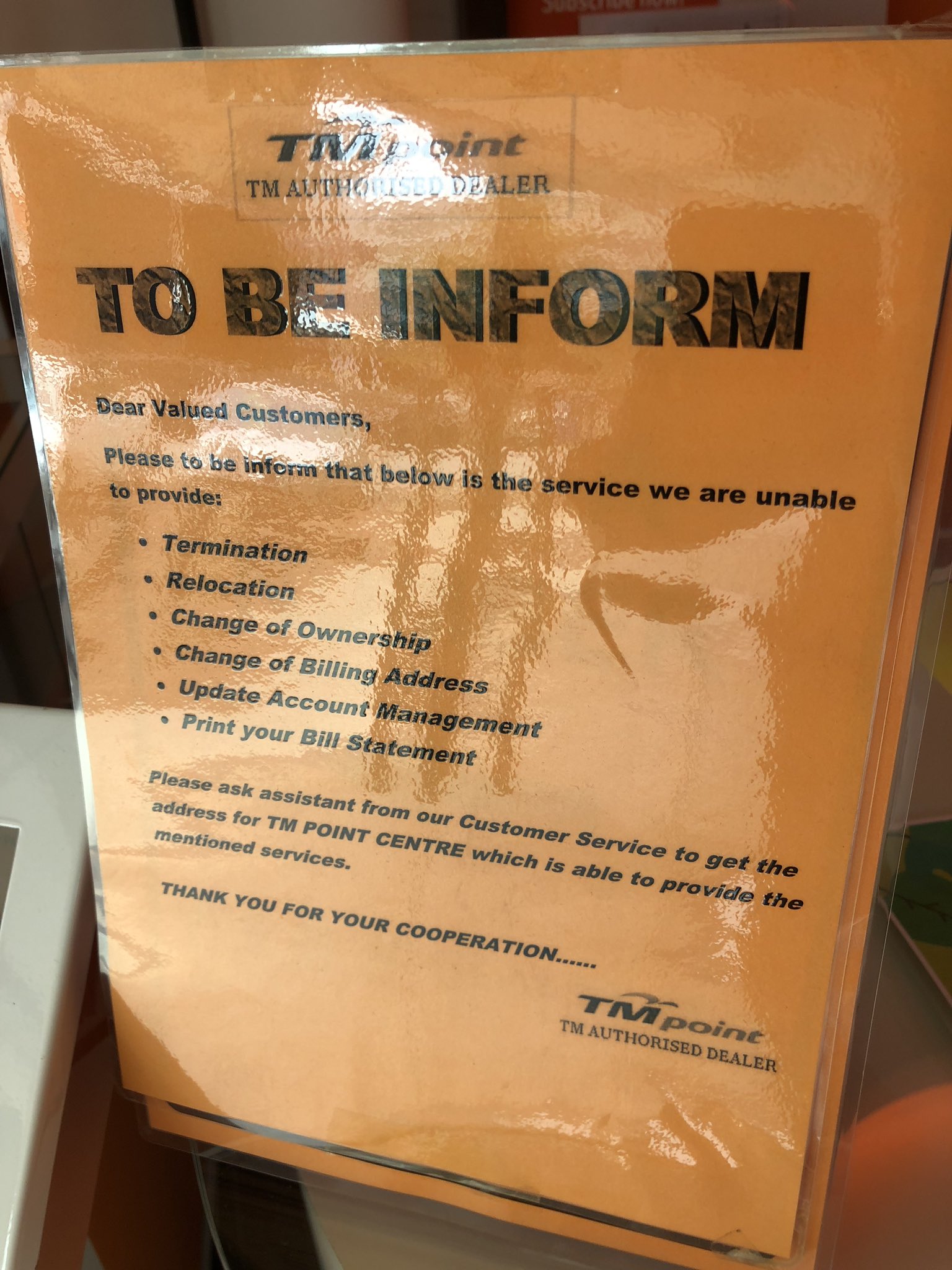 Andrewcwk On Twitter Hello I Ve Walk In To Your Tm Point Office At Kajang Today And Been Told I Can T Terminate Here Even When After 30 Days Notice I Ve Been Directed To